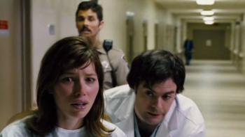 Alice (Jessica Biel), an Indiana waitress, faces one of the most exciting moments of her life: a marriage proposal from her hunky boyfriend, Scott (James Marsden). But an accident with a nail gun changes the course of her life, leaving one of its projectiles embedded in her brain. It causes all kinds of mood swings, but since Alice doesn't have any health insurance, she can't get a doctor to help. Her only chance is to go to Washington, where her congressman (Jake Gyllenhaal) has promised his constituents that they can ask him for assistance with anything -- including, perhaps, a health care bill that just might cover preexisting nail gun accidents and other unexpected mishaps?
